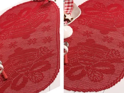 Крупная салфетка с рисунком рождественских колокольчиков в филейной технике удивит гостей и порадует всех домашних уютным праздничным настроением.