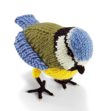 С изнаночной стороны головы закрепите концы нитей. С лицевой стороны соедините концы рядов, связанных пряжей С, с концами рядов, связанных пряжей А и уберите пряжу А с наборного края. Набейте голову, пришейте клюв к наборному ряду, который предварительно соедините, чтобы получился круг. Сшейте заднюю и переднюю части по бокам, постепенно набивая туловище. Пришейте бусинки-глаза. Отрежьте проволоку длиной примерно 45 см и согните с помощью плоскогубцев. Пряжей Е обмотайте лапы, пряжей С — когти.