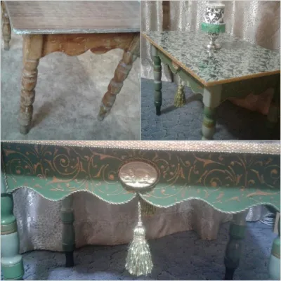 Этот стол украшает интерьер моей подруги. Когда я делала его, не знала какой будет результат. Все менялось в процессе декора. Хотела сделать совсем не так. Я человек настроения, поэтому конечный результат не всегда такой, как задумано изначально.