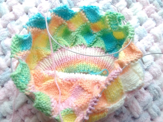 Спасибо. Я тоже три месяца назад посмотрела технику вязания, потом искала пряжу для этого вязания, в итоге накупила ее очень много, потом переезд, и все таки я села и начала вязать. Сам процесс мне очень нравится, ещё бы время побольше.