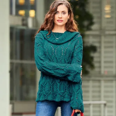 Свободный силуэт, ажурные косы, струящаяся пряжа — этот неформальный свитер выглядит женственно и стильно!