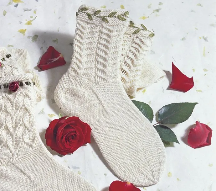 Атласные листики, расположенные на планках, делают эти носки очень нежными.