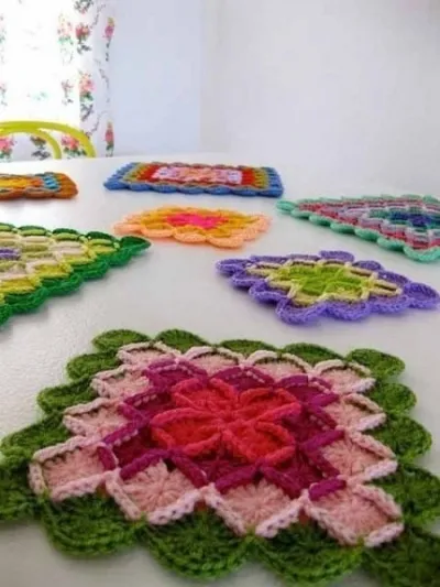 Данный элемент будущего пледа модно таким и оставить, связать еще множество таких же его собратьев и сшить в единый плед.