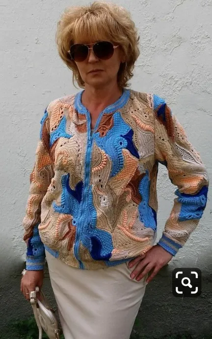 одна из разновидностей фриформа. просто обычный фриформ вяжется из элементов, это сборное вязание, а работы Ирины вяжутся полотном. она в одноклассниках выкладывает свои работы в процессе. ну а желтый топ- филейный фриформ.