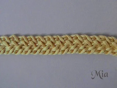 1.В этом шнуре есть лицевая и изнаночная стороны.При вязании работу поворачивать попеременно влево и вправо.Рабочая нить всегда по изнанке.