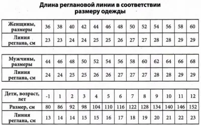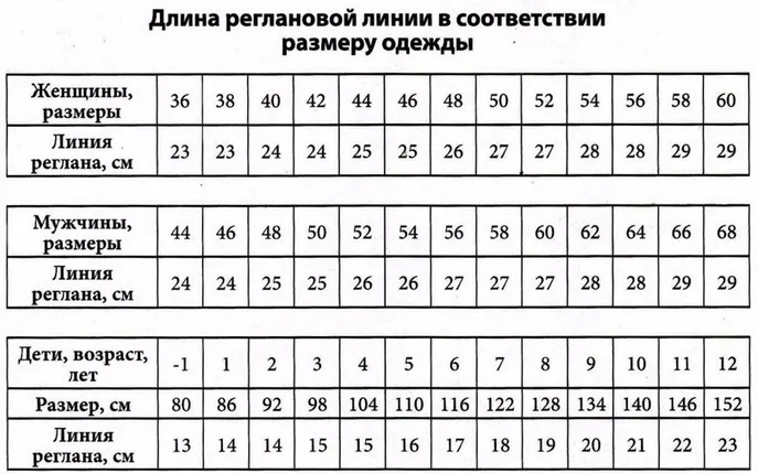 Таблица длины линии реглана