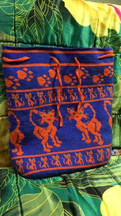 Вот и связался ещё один рюкзак. Связан из пряжи IRIS из египетского хлопка, сделано в Германии. Связано в две нити, при вязке дна дополнительно вложен бельевой шнур. Также выкладываю схемка котов. Спасибо за просмотр!