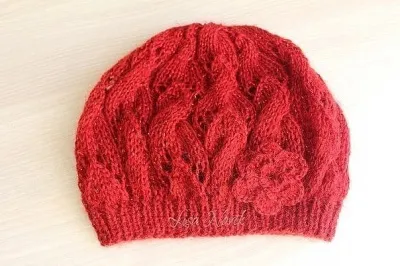 Вязаный спицами берет
