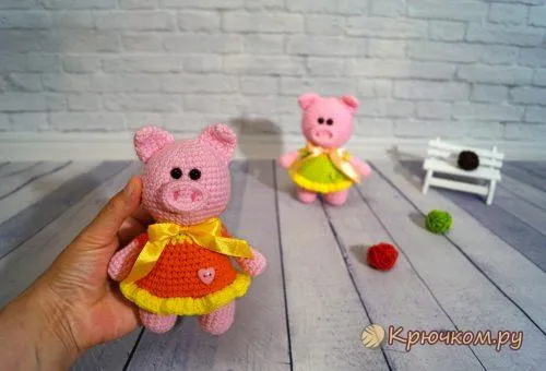 Так как у свинки достаточно низко расположено платье, хвостик отдельно не вяжется.