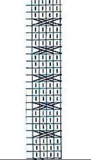 Вязание начинаем сверху с кокетки. Свяжите образец узора, определите количество необходимых петель и плотность узора. В данной модели не предусмотрен пояс. Можно ,конечно ,в кокетку вплести катушечную резинку подходящего цвета, но будет проще вставить простую резинку в пояс.