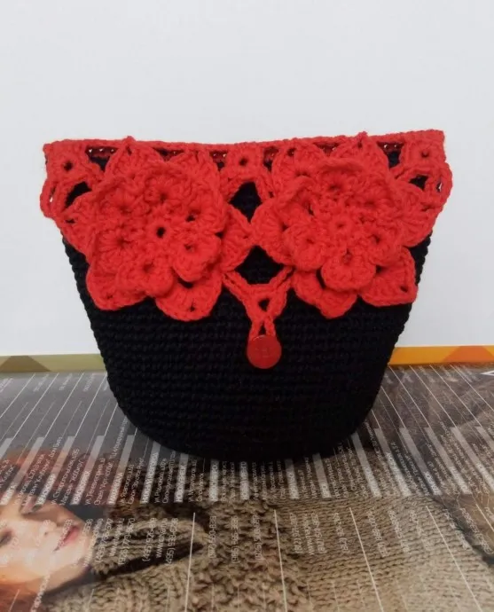 Вязаная косметичка с королевским сочетанием красного и чёрного