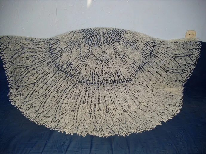 Шаль "Перезвон хрустальных листьев" дизайнера Надежды Кремневой связана на тестировании в Одноклассниках. Пряжа Alize LanaGold800(51% акрил49%-шерсть). В 100г-800 м. Спицы №4 и крючок для обвязки №1,9. Размер шали 145*85см, вес 140г. Шаль очень легкая, теплая и красивая.