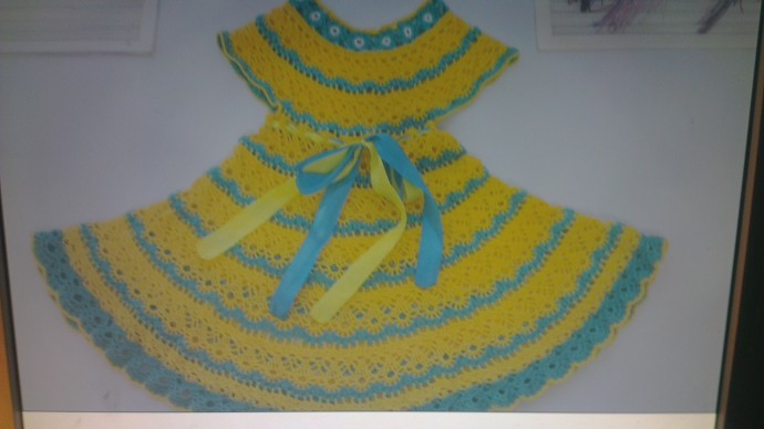 Летнее платьице и шапочка для внучки крючком. Нитки - "Ирис"