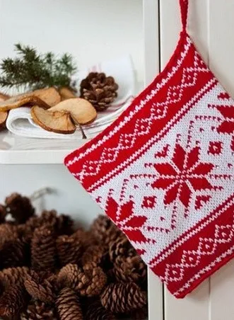 Очень симпатичная прихваточка! Можно связать по кругу, а потом связать вместе низ и верх, а можно двухсторонним жаккардом… Вот еще парочка хорошеньких прихваточек такого же плана