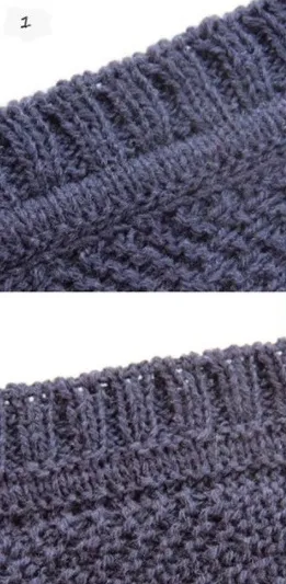1 ряд (лицевой): все петли изнаночные. Теперь и с изнаночной стороны изделия образовался рубчик, имитирующий кеттлевку.