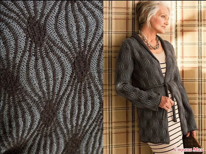 Плотность: спицами №6 (=4мм) 34 птл на 32 р. равны 10см на 10см; спицами №7 (=4,5мм) 31 птл на 29 р. равны 10см на 10см.