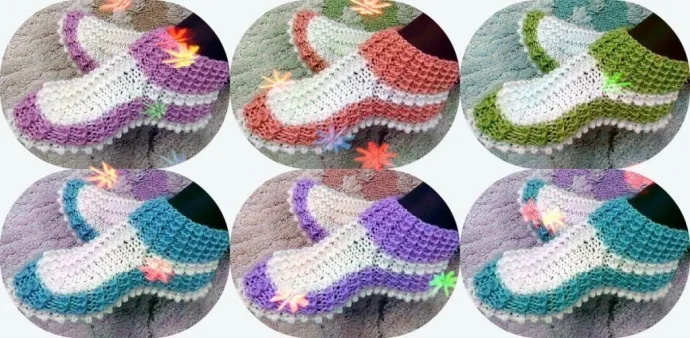 Затем набрать петли по краям мысика и вязать высоту тапочка.