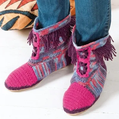 Запад бывает не только диким, но и вязаным! Вяжем стильные сапожки с бахромой