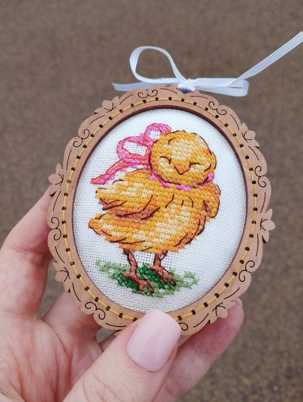 Всем добрый вечер! Я, помимо вязания, еще вышиваю, буквально вчера закончила весеннюю миниатюру — цыпленкав рамочке) всего 555 кретистиков, но столько радости и настроения для меня.